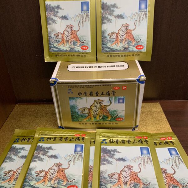 Parche Tigre para dolorContiene : Hierbas chinas ancestrales, tales como Menta, Clavo, Canela, Acónito, Gengibre, Rubus fruticosus.Fórmula desarrollada especialmente para mitigar y aliviar dolores.10 parches por sobreModo de uso : Adherir sobre zona con dolor.